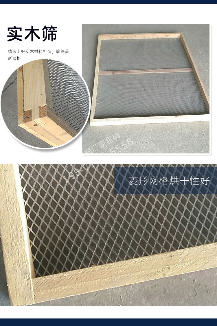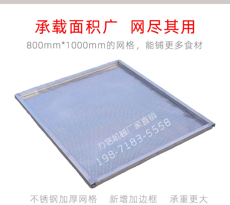 可根據(jù)客戶尺寸要求定制烘盤,特殊要求網(wǎng)盤底部可做加強(qiáng)筋,增加承重強(qiáng)度。四邊可采用不銹鋼方管貨木質(zhì)邊框。優(yōu)點(diǎn)為可定制任意尺寸,滿足客戶需求